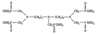別名:二乙烯三胺五亞甲基膦酸 分子式:C9H28O15N3P5 相對分子質(zhì)量:573.2 結(jié)構(gòu)式: